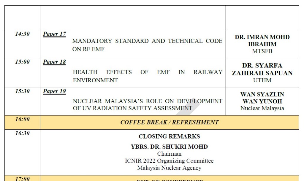 International Conference on Non-Ionizing Radiation (ICNIR 2022) held at Bayview Hotel, Penang.